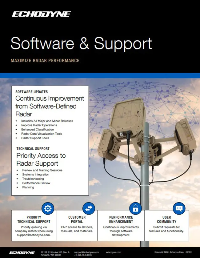 View the complete Software & Support services summary here: Echodyne Software Support Services (PDF)
