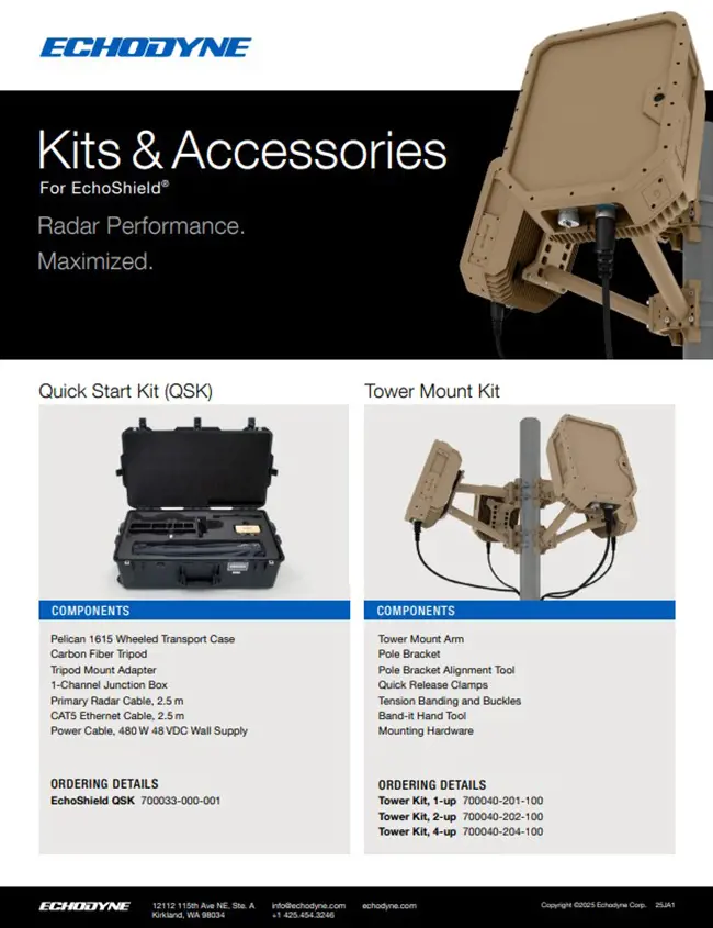 When mission environments demand range, reliability, or rapid deployment, a well-designed kit can be the difference between being informed—and being exposed. That’s where EchoShield Kits step in, delivering everything needed to bring Echodyne’s advanced radar capability to the field, fast.